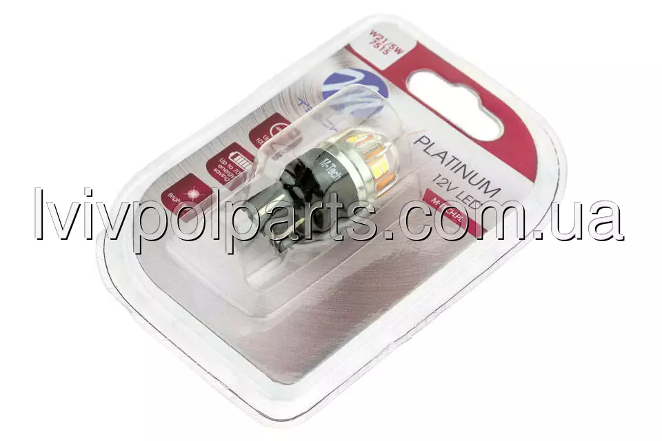 Лампа Led W21 5W Platinum Oznaczenia: W21 5W Symbol Podstawy: W3X16Q,Iloшх Diod: 15 X Led,Typ Diody: 2835Smd,Kolor: Zimna Biel,Moc: Max, 3,9W,Jasnoшх: Max, 255Lm,Napiрcie: 12-24V,Canbus: Tak Виробник
