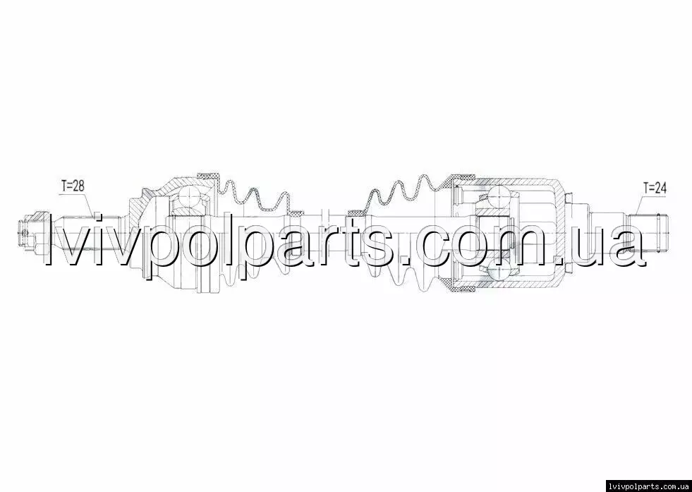 Піввісь привід Jeep Compass 2.0Crd,2.2Crd,2.4 2Wd,4Wd 06-, Patriot 2.0Crd,2.2Crd,2.4 2Wd,4Wd 07- /Лівий Перед,Мкпп/ Код OE 05085224AB