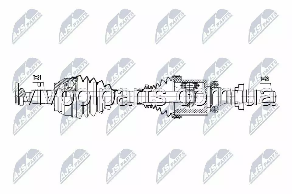Піввісь Привід NTY Land Rover Discovery Sport 4Wd 2.0,2.0Si4 14-, Range Rover Evoque 4Wd 2.0 15- /Перед,Прав,9Atm/ OE LR024755