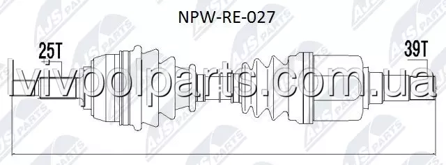 Піввісь Привід Renault Megane Ii 1,9Dci,2,0 02-, Scenic Ii 1,9Dci,2,0 03-, Grand Scenic 1,9Dci,2,0 04- /Лівий/ Виробник NTY NPW-RE-027 номер OE 7711135420