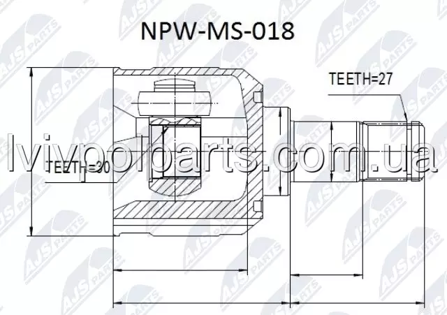 Внутрішній Шруз Шарнір Привідного Валу Mitsubishi Galant Usa Ea3/8A 96-03 Виробник NTY NPW-MS-018 номер OE MR470021