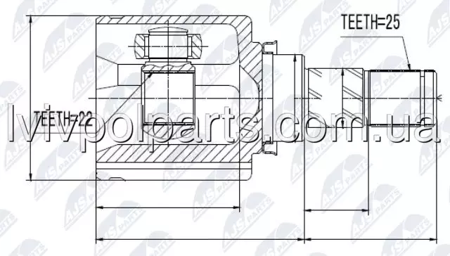 Внутрішній Шруз Шарнір Привідного Валу Nissan Tiida C11 05- L/R Виробник NTY NPW-NS-014 номер OE 39720-ET028