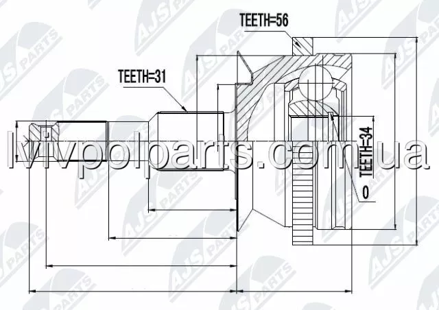 Зовнішній Шруз Шарнір Привідного Валу Dodge Durango 98-04, Dodge Dakota 95-03 /34 Teeth/ Виробник NTY NPZ-CH-014 номер OE NPZ-CH-014